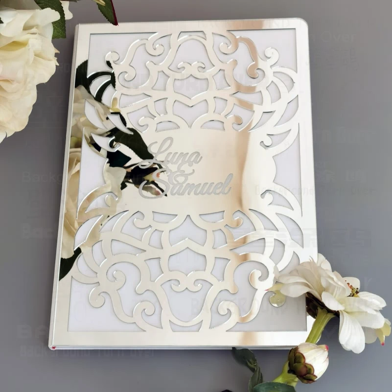 Best Quality Custom Wedding Guest Book with Mirror Front Cover Signature Guestbook Engrave Names Date Album Brid