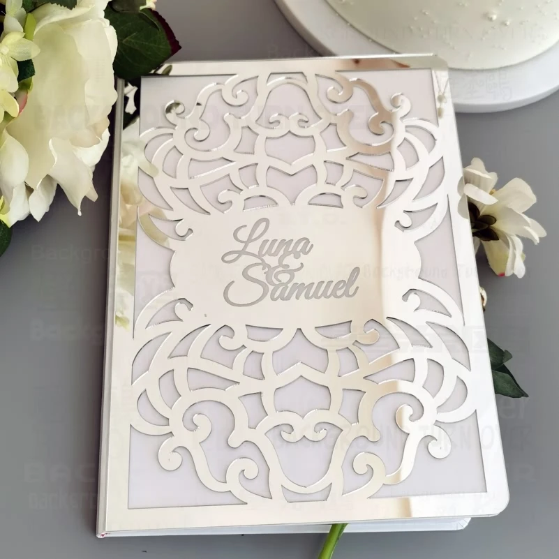 BEST QUALITY Custom Wedding Guest Book with Mirror Front Cover Signature Guestbook Engrave Names Date Album Brid